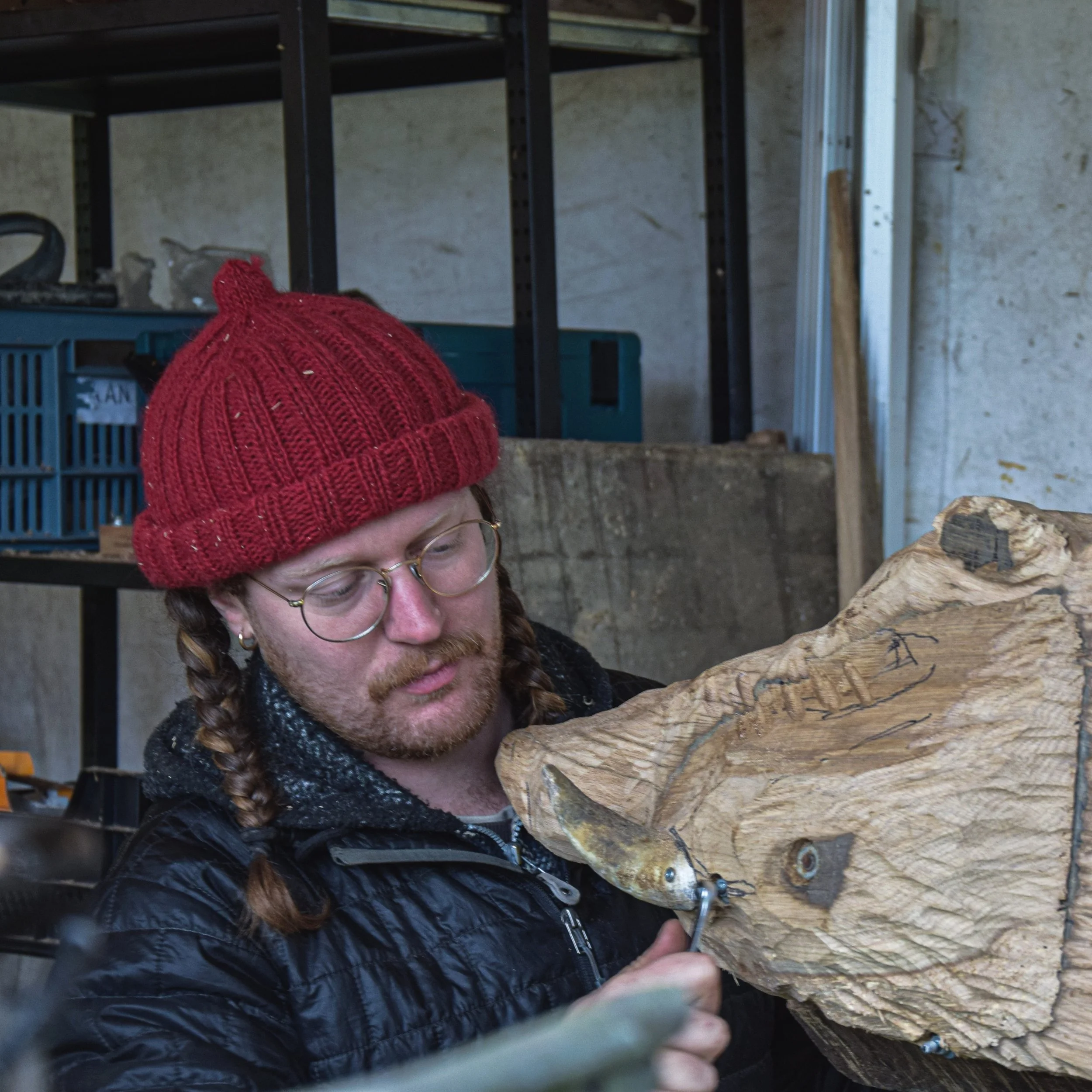 Floris Barnhoorn werkt als zelfstandig scenograaf en houtbewerker, daarnaast is hij als theatertechnicus verbonden aan de HKU. In 2016 studeerde hij af in Theatre Design (bachelor) aan de HKU, waarna hij in 2019 begon aan de Master in Theatre aan de Toneelacademie in Maastricht. Daar onderzocht hij autonome scenografie geïnspireerd door het animisme. Sindsdien ontwikkelt hij zich ook als beeldend kunstenaar. Vanuit zijn fascinatie voor de mens als onderdeel van de natuur verweeft hij thema’s als het antropoceen, animisme, langetermijndenken en oude ambachten in zijn werk. Deze interesses komen onder meer samen in zijn rol als voorzitter van het kleinschalige co-creatie festival Eau Mont Jardin in Noord-Frankrijk. Als autodidact houtbewerker is Floris in 2025 begonnen aan de opleiding Hout en Beeld aan de Koninklijke Academie van de Schone Kunsten in Antwerpen. Floris heeft de ambitie om het ambacht van beeldhouwer te combineren met zijn oorspronkelijke vakgebied scenografie.